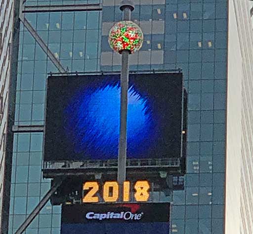 Viel besungen und Schauplatz vieler Filme und Serien: New York. Bei unserem Besuch am Times Square haben wir auch den Times Square Ball gesehen, der traditionell zum Jahreswechsel aus ca. 41m Höhe heruntergelassen wird. Laut Wikipedia hat er einen Durchmesser von 3,7m, er kam uns aber viel kleiner vor.