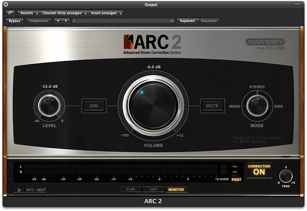Eine standalone-Version ist mein zweiter Wunsch. Es wäre doch klasse, wenn das Korrektursystem auf alle Audiosignale wirken könnte, die ich über mein Interface hören kann, also z.B. auch Songs, die mit iTunes oder dem optischen Laufwerk des Computers abgespielt werden.