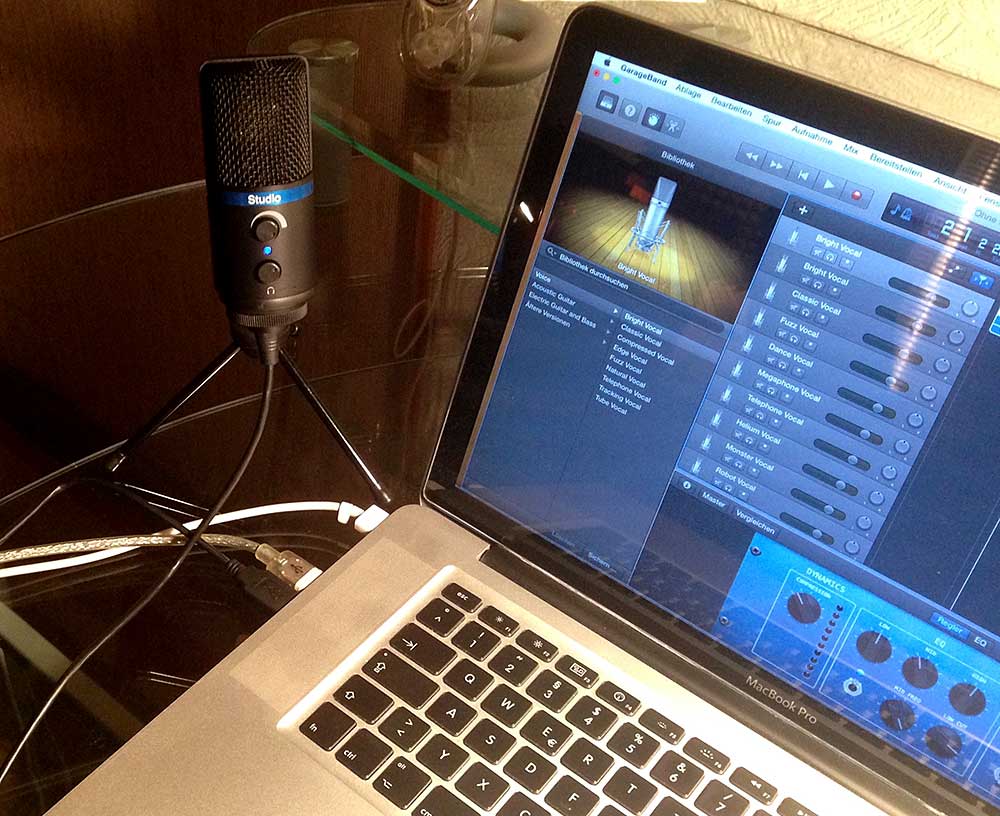 Mit 3-Bein-Stativ am MacBook Pro, Software Apple GarageBand