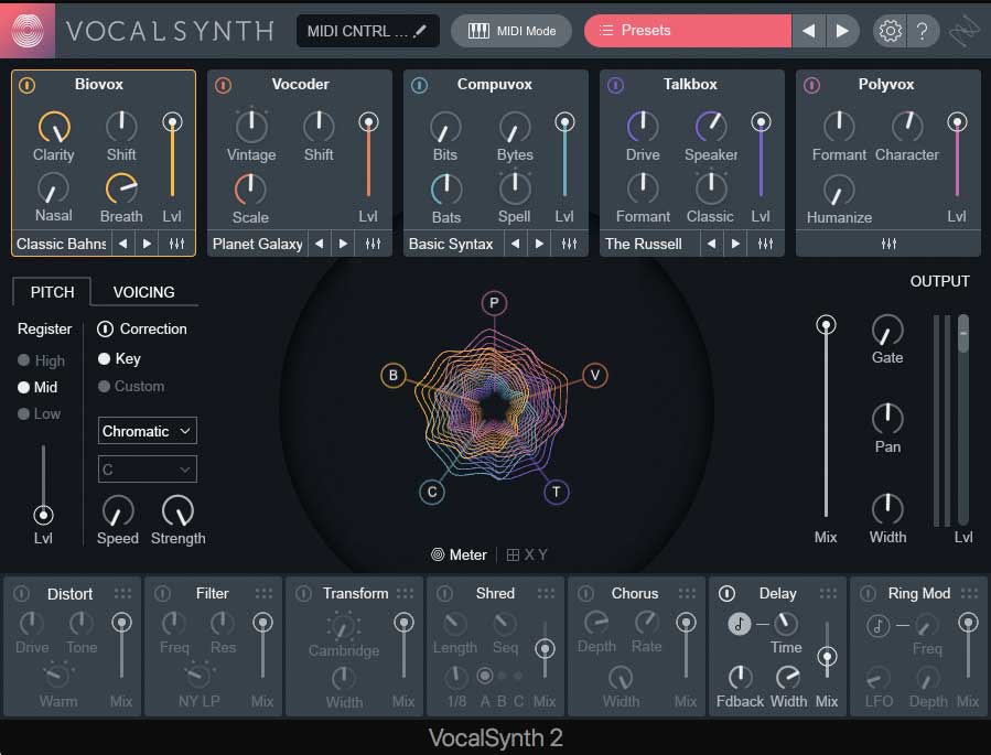 Elektronisch verfremdete Vocals sind aus heutigen Musikproduktionen nicht mehr wegzudenken. Fünf verschiedene Tools, die sich flexibel kombinieren lassen in einem Plug-in bietet VocalSynth 2 von iZotope.