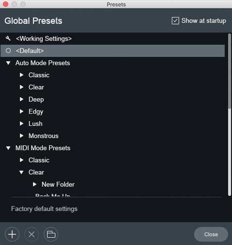 VocalSynth 2 besitzt einen Preset-Browser, der in einem separaten Fenster geöffnet wird. Die Presets sind zahlreich und praxistauglich. Ich gehe meistens so vor, dass ich mir ein Preset aussuche, das mir gefällt und dann daran „schraube“. Falls das nicht zum Ziel führt, lässt sich mit einem Klick auf Default alles zurücksetzen und man kann eine Einstellung „from scratch“ vornehmen.