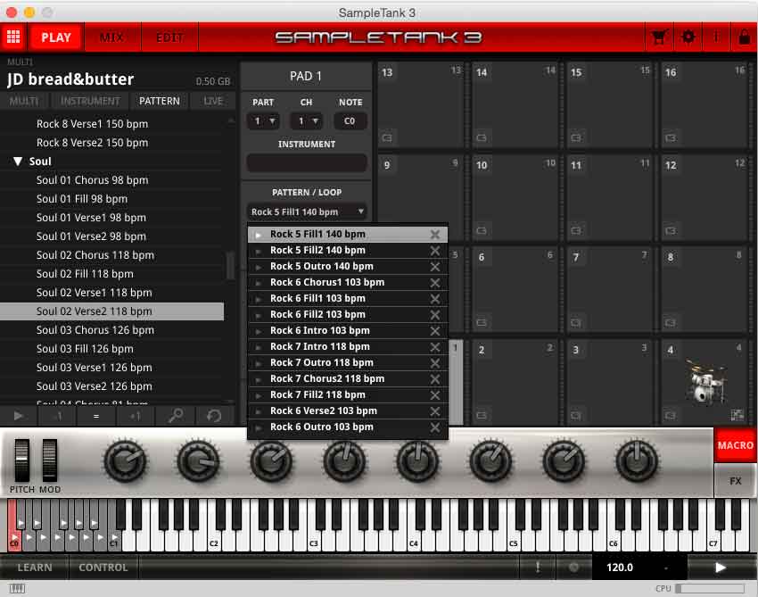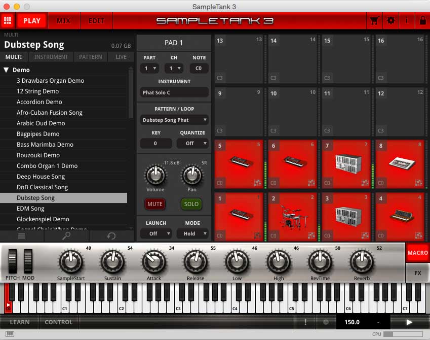 Im Vordergrund steht die Kompatibilität mit IK’s MIDI Groove Controller iRig Pads für iOS, Mac und PC. Damit lässt sich SampleTank ohne Mausklick bedienen; eine Technologie, die viele Musiker anspricht. Auch Pad Controller anderer Hersteller lassen sich verwenden. Die neue PAD page bringt ein neues Bedienungskonzept auch auf den Desktop Computer oder Laptop.