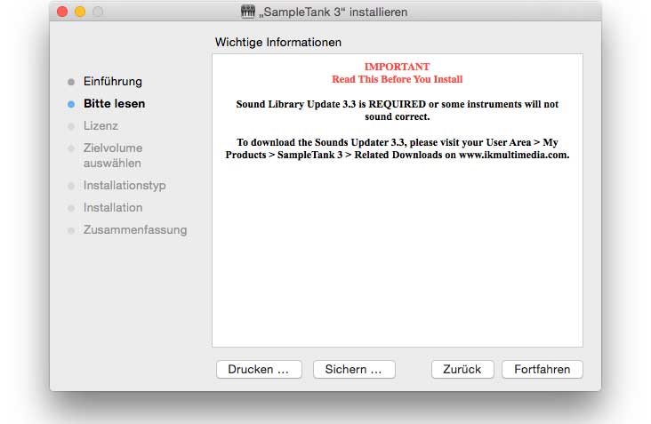 Während der Installation erscheint ein Hinweis darauf, dass für die Aktualisierung der Soundlibrary ein zusätzlicher Download nötig ist, der sich unter „Related Downloads“ befindet.
